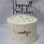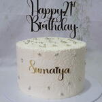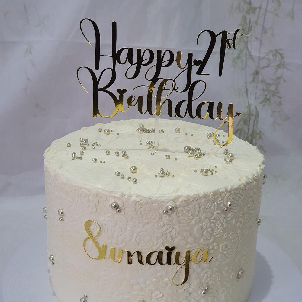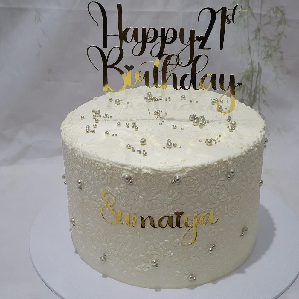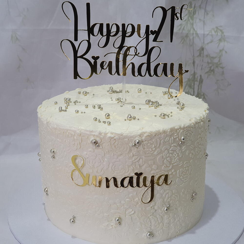 This simple but gorgeous cake is stencilled with a delicate roses design and comes with a personalised message and name and can ordered in other light shades aswell