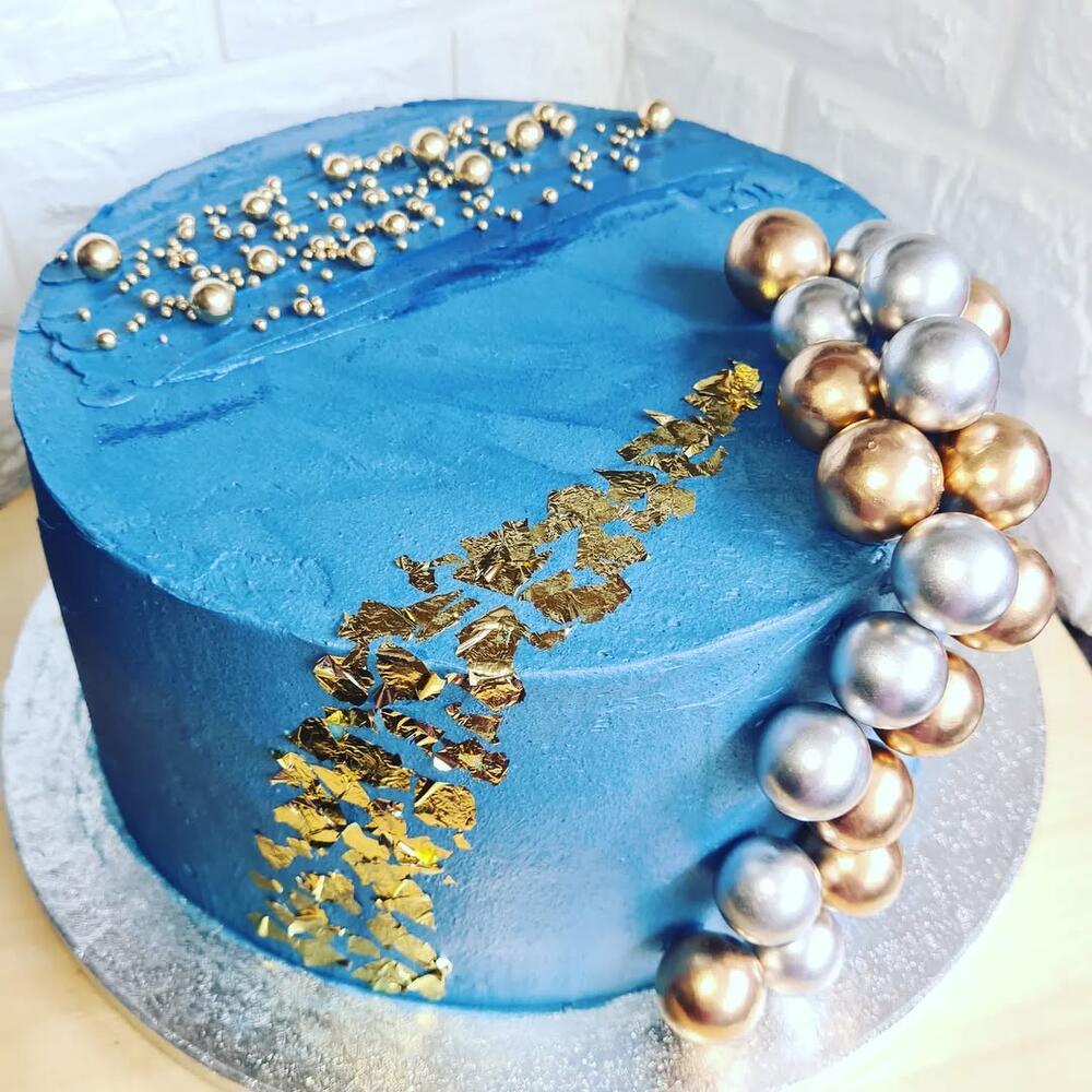 Elevate your event with our stunning Blue and Gold Luxe Celebration Cake, a sophisticated dessert designed to impress. Featuring a smooth, deep blue buttercream exterior accented with edible gold leaf and elegant metallic spheres in gold, silver, and bronze, this cake makes the perfect centrepiece for birthdays, engagements, or milestone celebrations. Inside, youll find moist sponge cake layers paired with a flavour of your choice—chocolate, vanilla, red velvet, or lemon—each filled with silky cream for a rich and satisfying bite. Every element is handmade and fully edible, crafted with precision and flair. Allergens: Contains eggs, milk, gluten. Custom allergen-free options available on request. Serving Storage Tips: Serves approximately 10–12 people. Store in the refrigerator and bring to room temperature 30 minutes before serving for the creamiest texture and fullest flavour. Ideal with champagne, prosecco, or herbal teas.