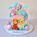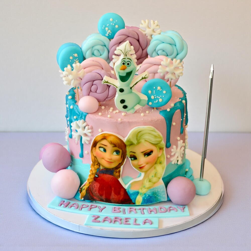 🎀 Cartoon Princess Winter Theme Birthday Cake – Handmade Custom Design
