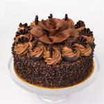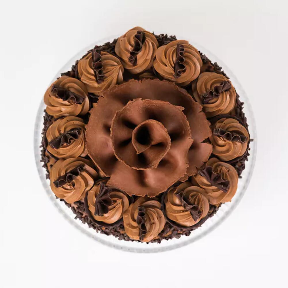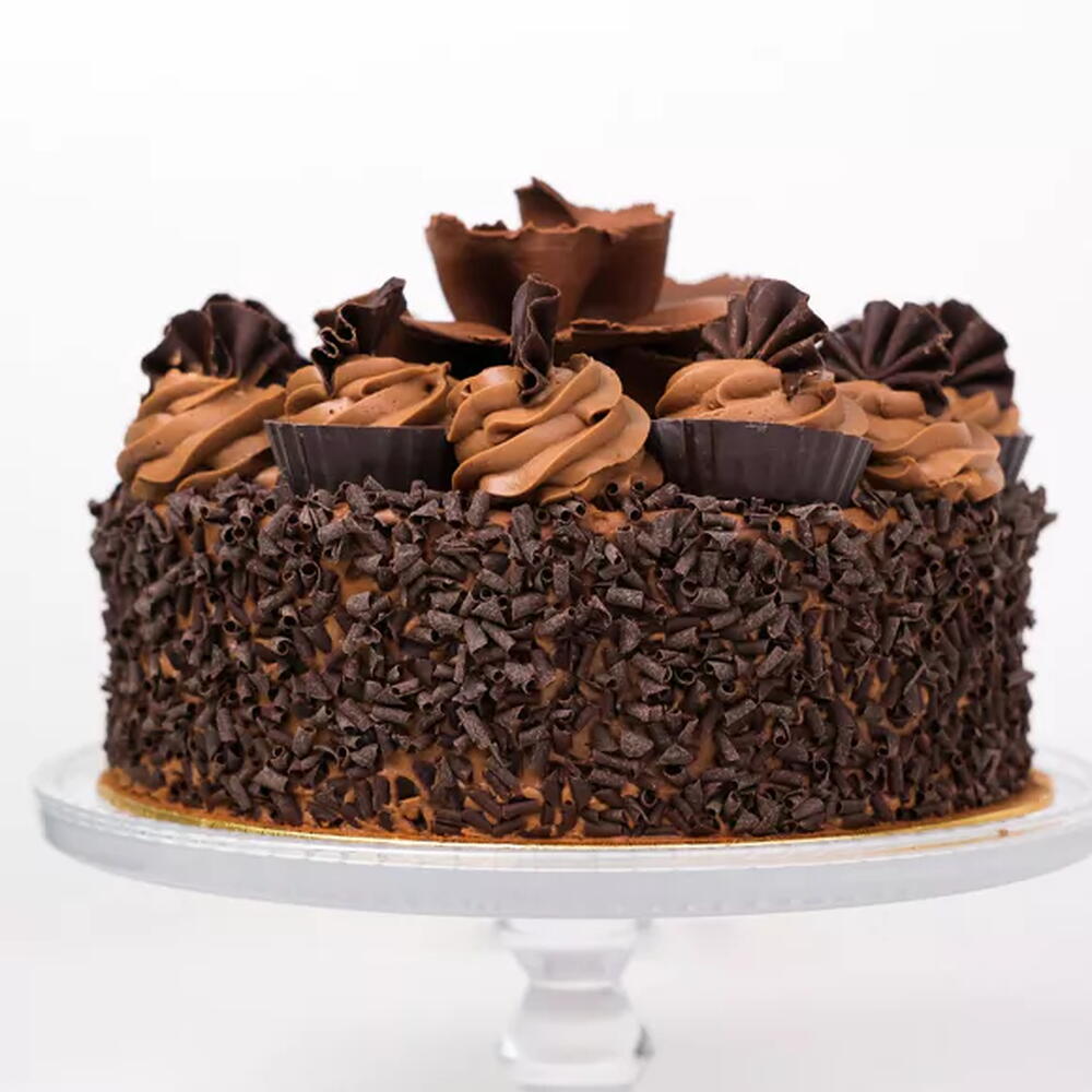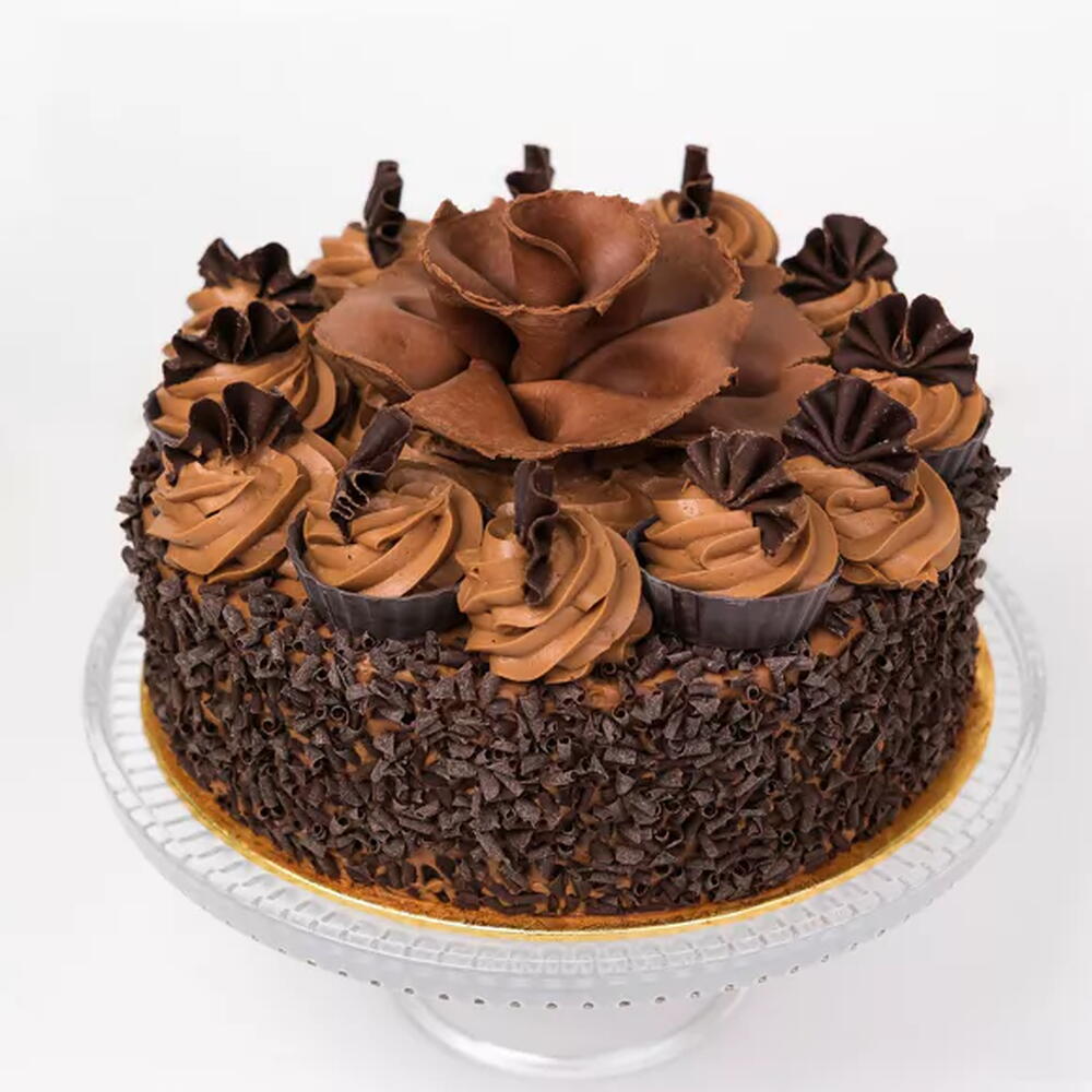 Chocolate sponge cake layered with Belgian chocolate cream and finished with chocolate curls. The cake is available as well as white Chocolate Gateaux in the birthday cakes category. Due to the fact that this product is prepared in a facility that manufactures GLUTEN, EGG, SOYA, MILK, NUTS and other ALLERGENIC ingredients, it may contain these allergens