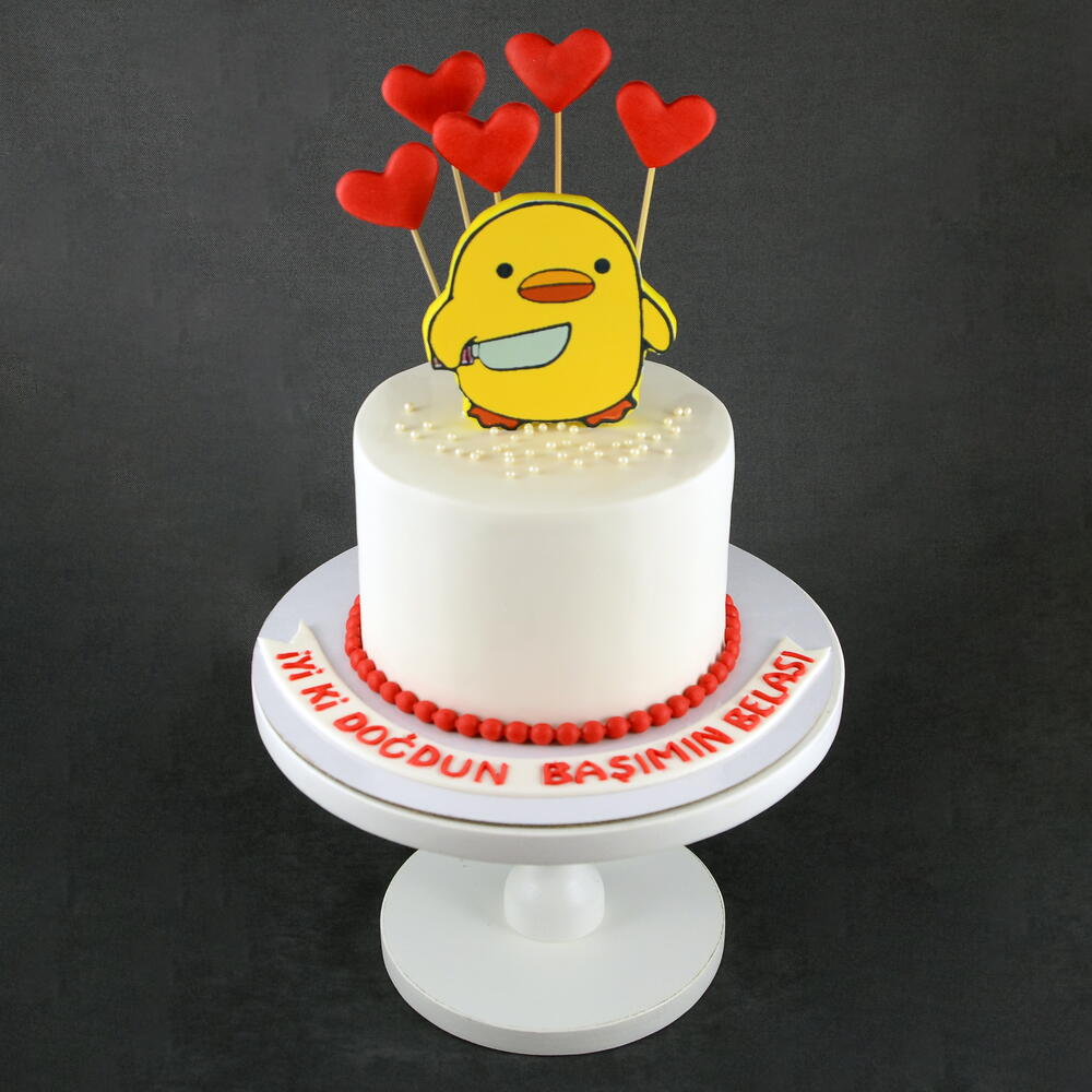 🐤🔪 Duck Chick With Knife Cake – Handmade Custom Design
