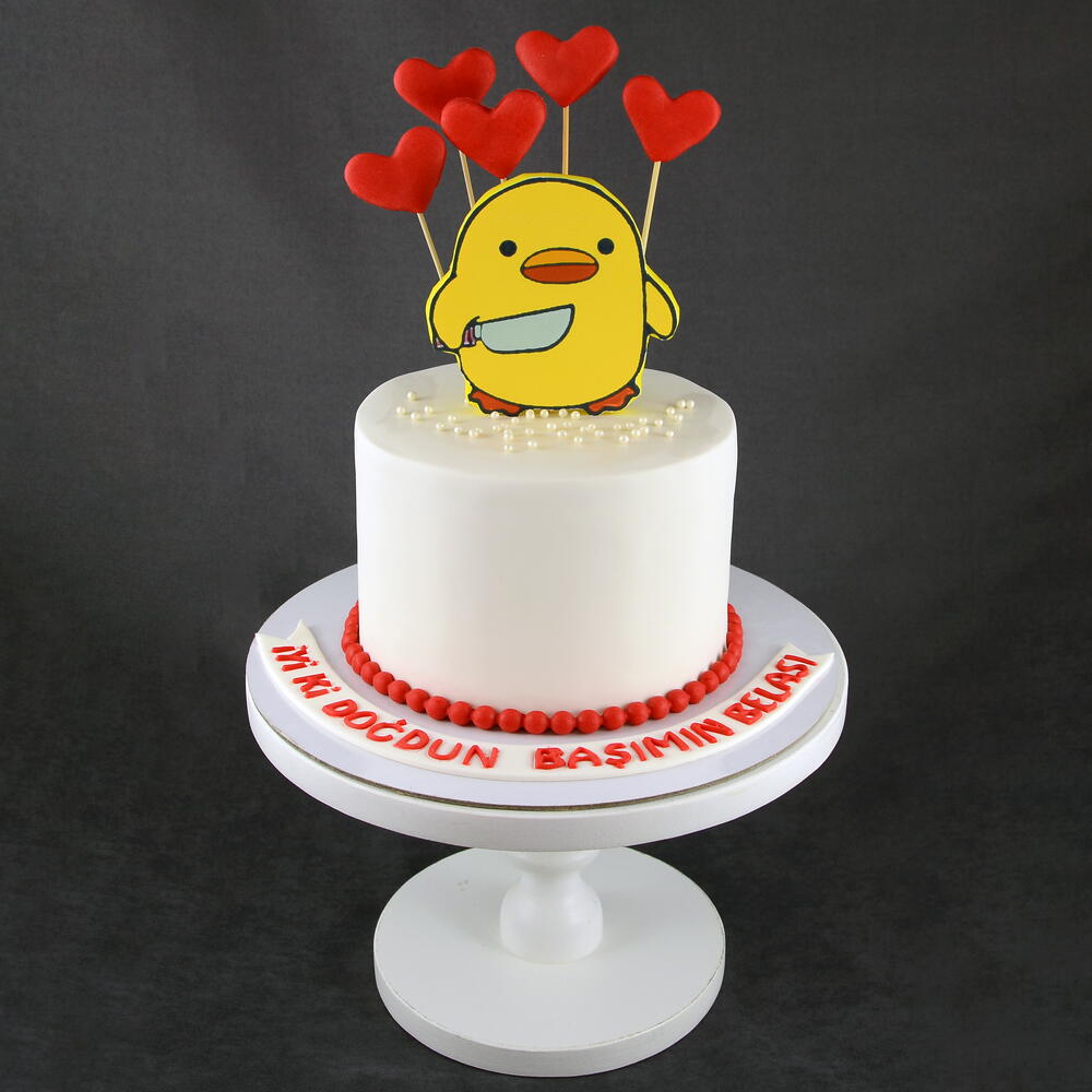 This funny and adorable Duck Chick With Knife birthday cake features a smooth white buttercream exterior, topped with a cute yellow chick holding a little knife and surrounded by red heart toppers. A perfect mix of cute and humorous — ideal for both kids and adults who love meme-style character cakes! Every cake is prepared fresh to order, fully additive-free, and made using premium, first-class ingredients only. Perfect for: • Memes funny character lovers • Cute aesthetic celebrations • Kids’ birthdays • Custom personalised cakes Name, age and topper message can be fully customised. Why people love it: ✔ Iconic “duck chick with knife” meme style ✔ Premium ingredients, additive-free ✔ Handmade 3D toppers ✔ Modern minimalist look ✔ Freshly baked ✔ London delivery available duckchickwithknife, memecake, funnycake, cutecake, customcake, handmadecake, aestheticcake, fondantcake, londoncake, birthdaycake