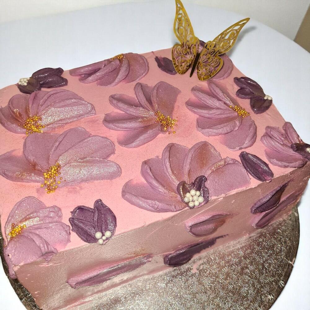 Celebrate any special occasion with our Elegant Floral Nutella Cake, a stunning handcrafted dessert adorned with pastel buttercream blossoms and a delicate golden butterfly topper. This square cake is a visual and flavorful masterpiece, making it ideal for birthdays, anniversaries, or elegant gatherings. ⚠️ Allergens Contains eggs, lactose, gluten, and nuts Store in a cool, dry place or refrigerate if not served immediately. Allow to sit at room temperature before slicing for the best texture and flavour.