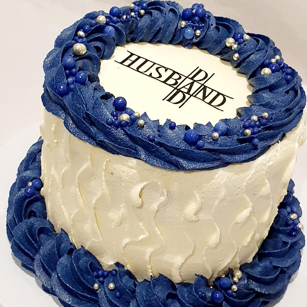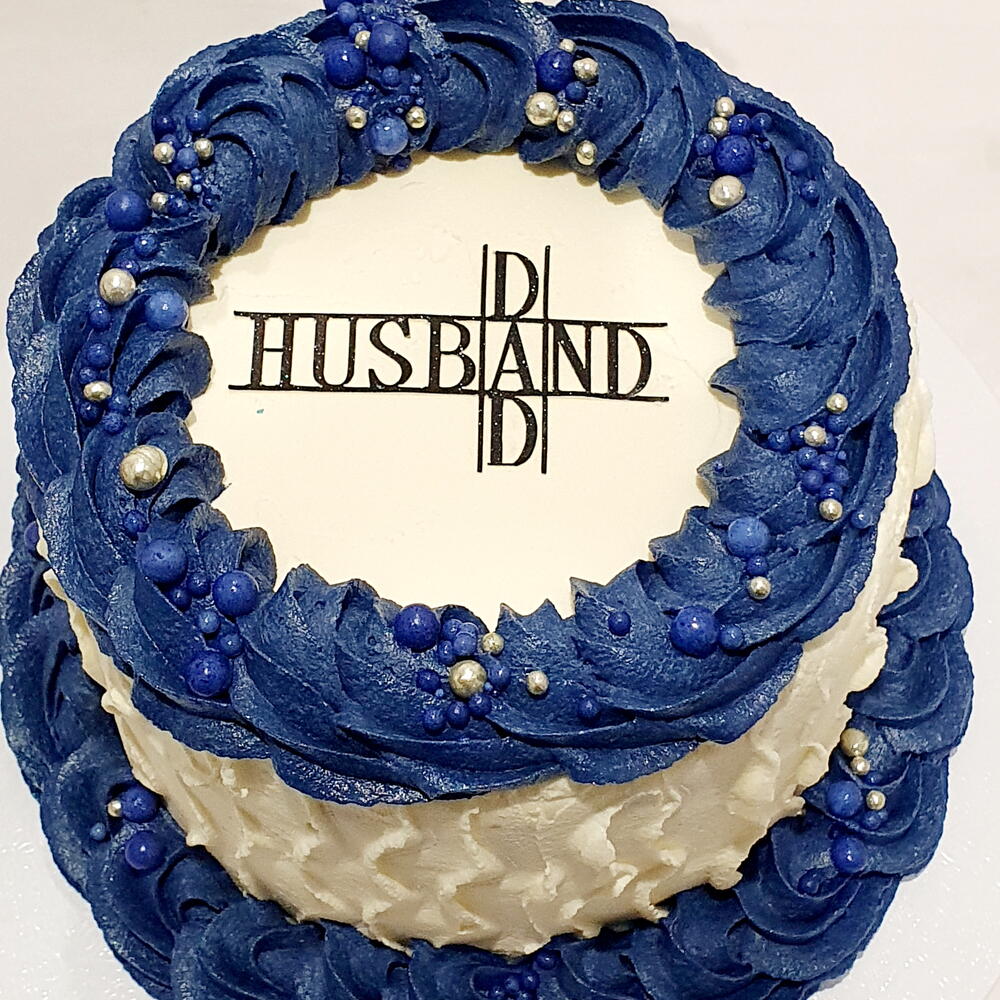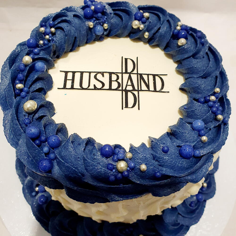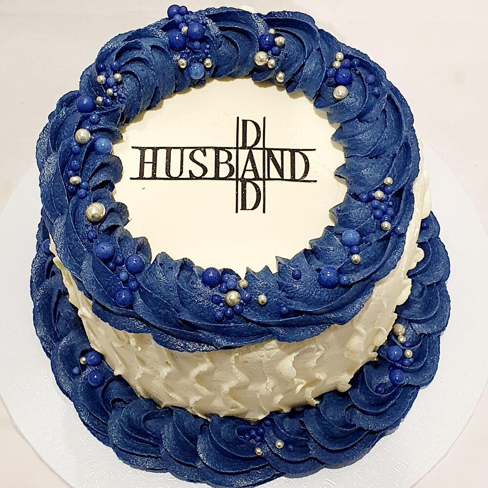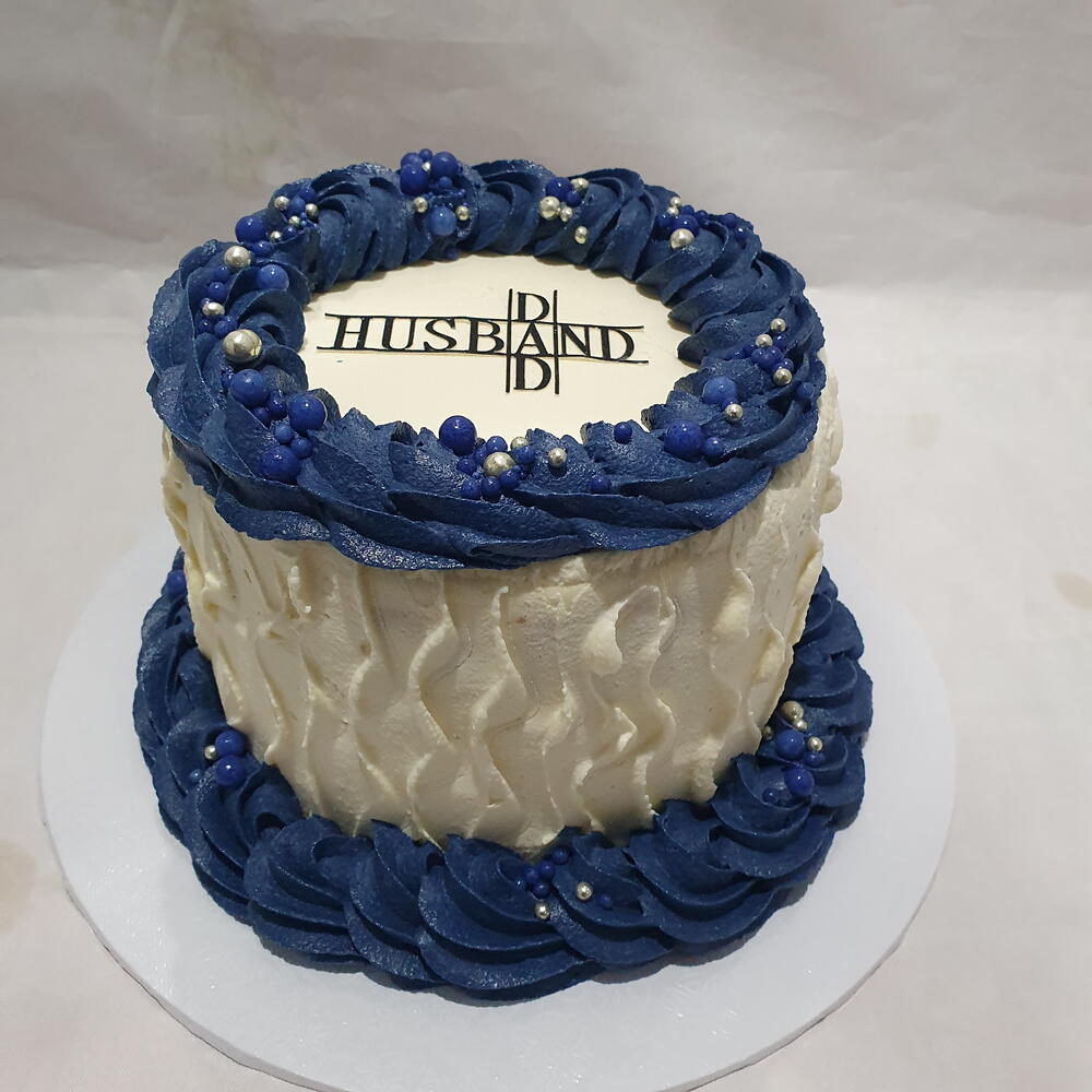 A beautiful cake for a hubby / dad available with piping in this blue, light blue, plain white or grey