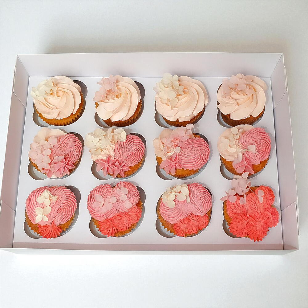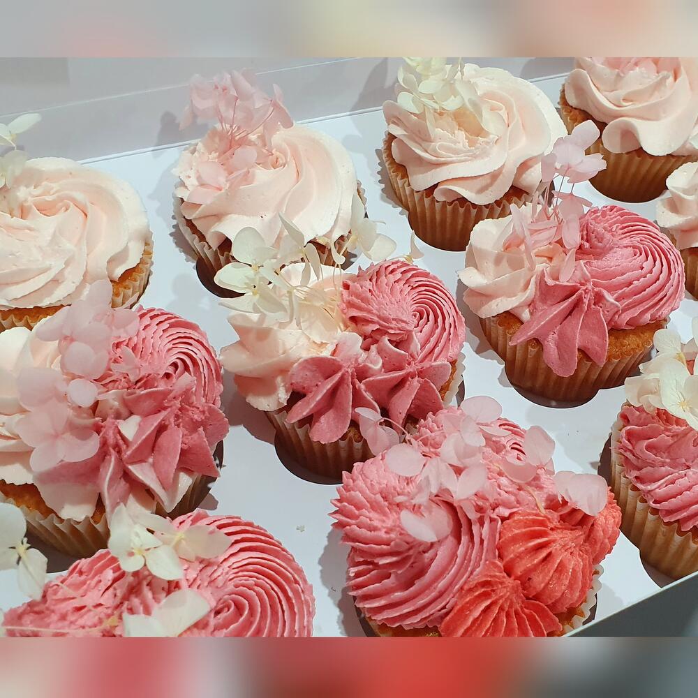 Delicate, dreamy, and delicious—this set of 12 cupcakes is a celebration of elegance in every bite. Swirled with shades of blush, baby pink, and soft coral, these cupcakes are topped with intricate buttercream flowers and dainty edible blossoms. Perfect for baby showers, bridal parties, birthdays, or any event where a touch of femininity and grace is desired. Each cupcake is a handcrafted masterpiece, blending beauty and flavor in perfect harmony. Presented in a sleek white box, they’re ready to impress and delight. Ideal as a gift or a stunning addition to your dessert table. Let these floral cupcakes bring sweetness and charm to your special moments!