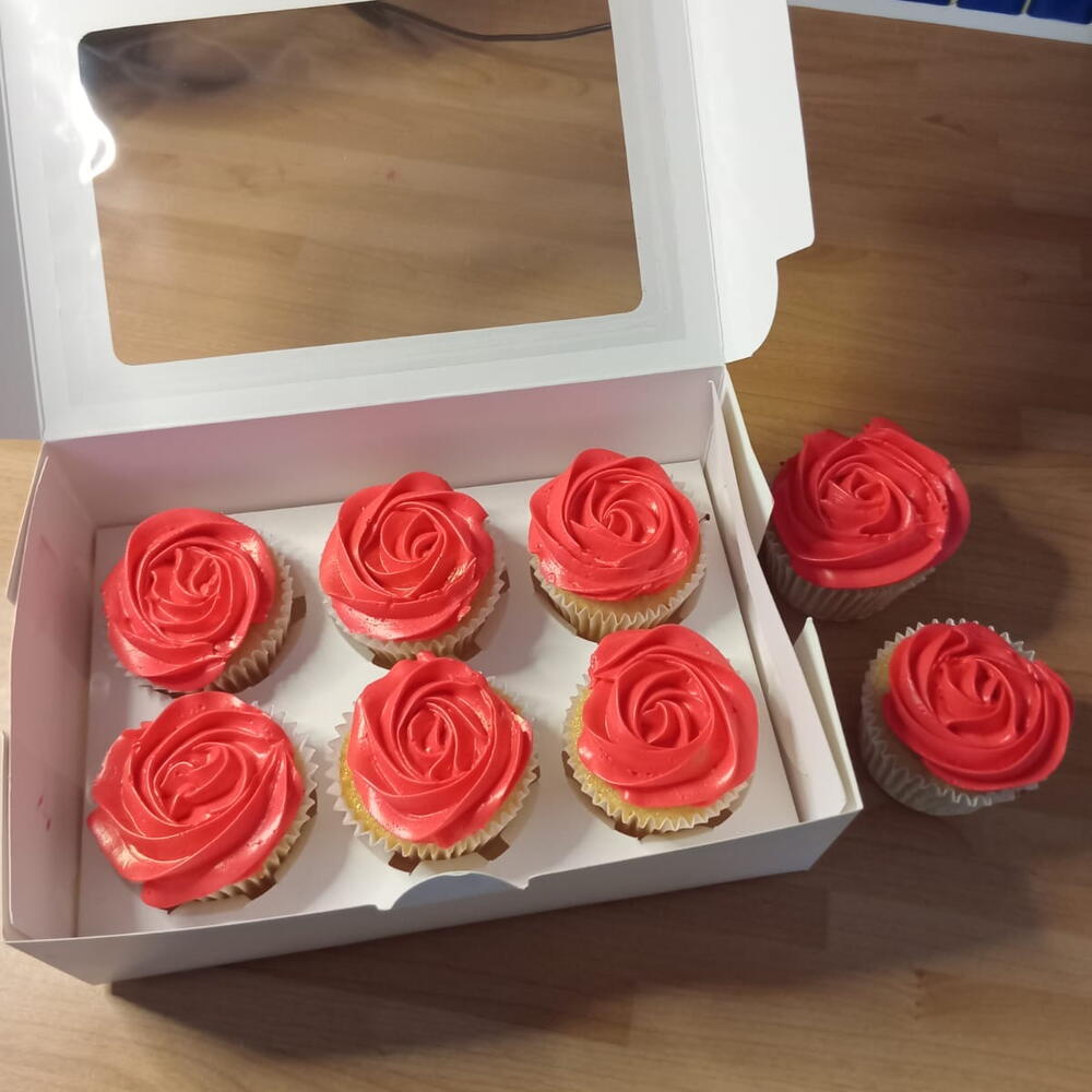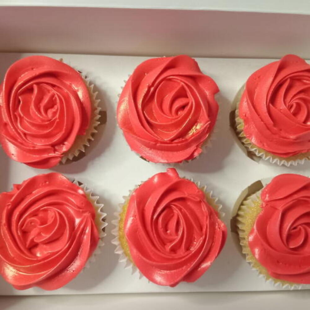 Light, fluffy vanilla sponge topped with a smooth rose-swirled buttercream finish. Hand-piped for a clean, elegant look — simple, classic, and timeless. Perfect for: • Birthdays • Thank you gifts • Galentine’s / Valentine’s ❣️ • Bridal showers • Sweet everyday indulgence • Boxed fresh in sets of 6 or 12 • Made to order