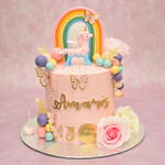 🧁 Unicorn Rainbow Birthday Cake – Handmade Custom Design This magical unicorn-themed birthday cake features a soft pastel pink buttercream base, a handmade fondant unicorn figure, a colourful rainbow topper, delicate butterflies and pastel decorative balls. The design is completed with personalised name and age details, creating a dreamy and joyful celebration cake for children. Each cake is freshly made to order using premium, first-class ingredients and is completely additive-free. 🎉 Why Customers Love It • Enchanting unicorn rainbow theme • Fully handmade fondant decorations • Soft pastel colour palette • Additive-free • Premium ingredients only • Freshly baked to order • Personalised name and age • Perfect for kids’ birthday celebrations 🔧 Customisation Name, age, colours and decorative details can be personalised upon request. Please include your custom details at checkout or message us after ordering. ⚠️ Safety Note All decorations are made from fondant and edible ink printed elements. Some decorative figures may contain toothpicks or internal supports for stability. Please remove any non-edible supports before serving. This safety note applies to all figurine cakes. 🚚 Delivery Info Same-day delivery is generally not available. If you require delivery earlier than the time shown in the system, please message us before ordering — earlier delivery may be possible depending on availability. Delivery fees are calculated automatically based on distance. 🏷️ Tags unicorncake, rainbowcake, kidsbirthdaycake, customcake, handmadecake, fondantcake, aestheticcake, londoncake, girlycake, celebrationcake