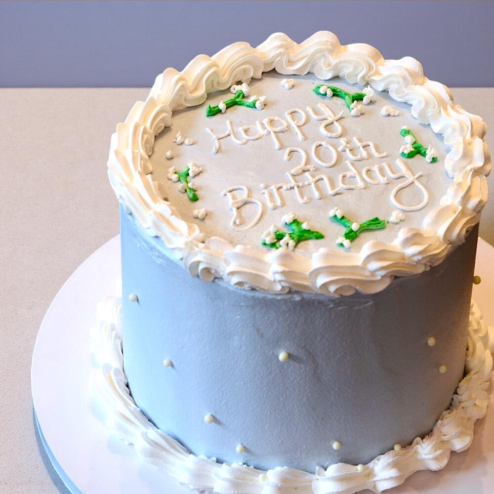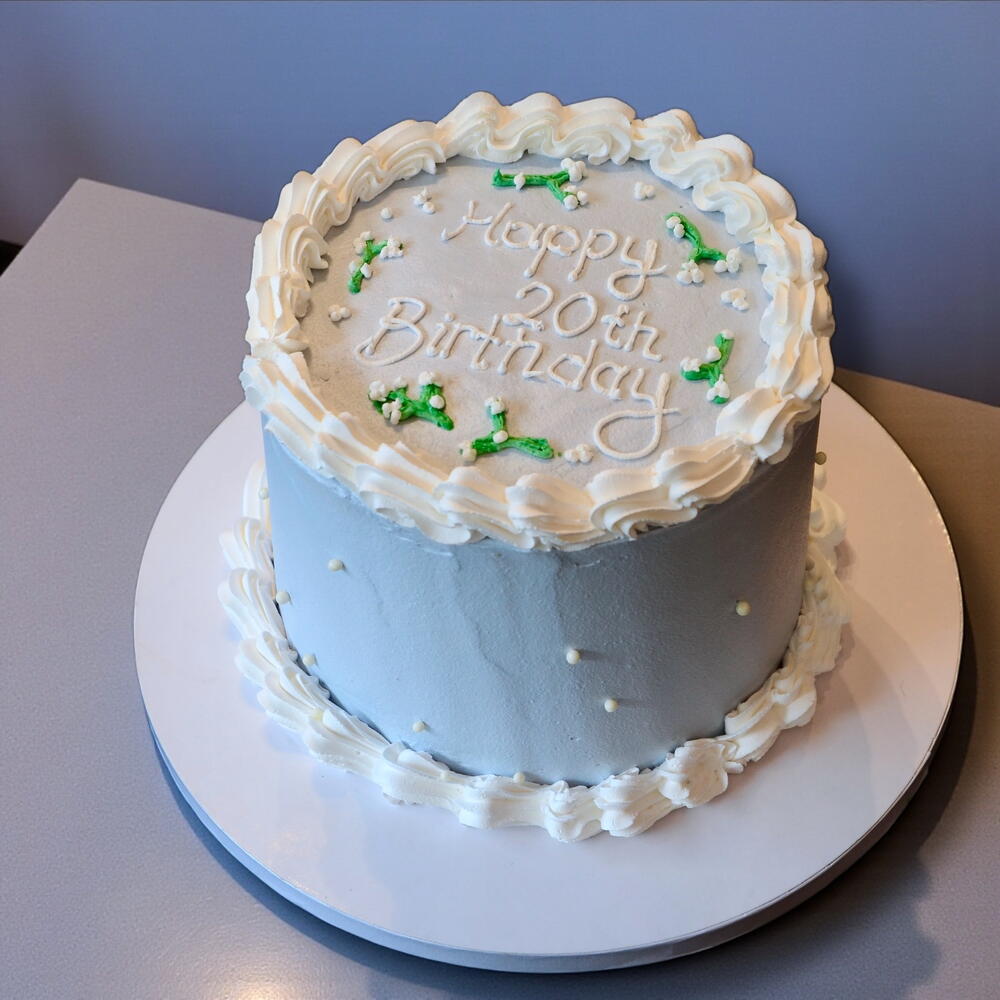 A beautifully handmade vintage-style birthday cake with smooth buttercream and elegant piping details. Perfect for any age celebration. Freshly baked to order with premium ingredients. Custom message available.