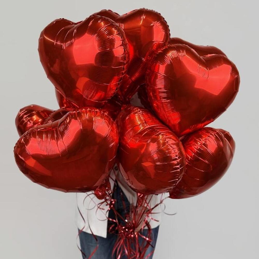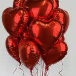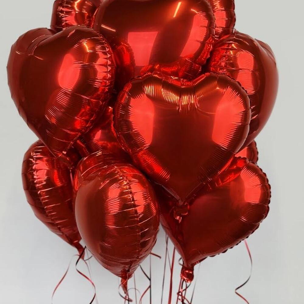 12 heart-shaped red balloons