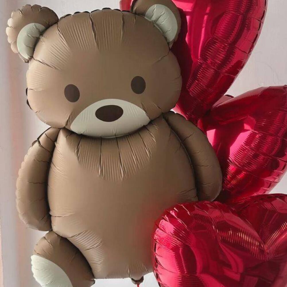 A sweet balloon arrangement featuring a big teddy bear foil balloon paired with shiny red heart-shaped balloons. Perfect for Valentine’s Day, romantic surprises, anniversaries, or as a cute gift for children’s birthdays and baby showers🧸