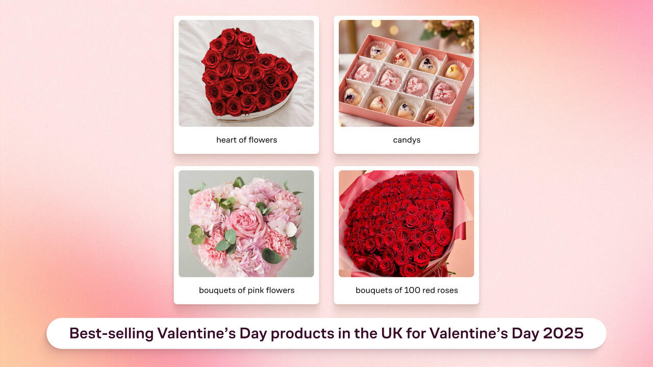 If you’re unsure what to push, start with what’s already winning in 2025. Best-selling Valentine’s Day products in the UK for Valentine’s Day 2025: