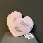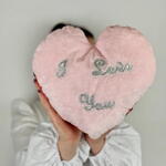 Soft pink heart-shaped cushion with embroidered “I Love You”. A gentle and romantic addition to any flower bouquet. This item can only be ordered together with a bouquet.