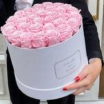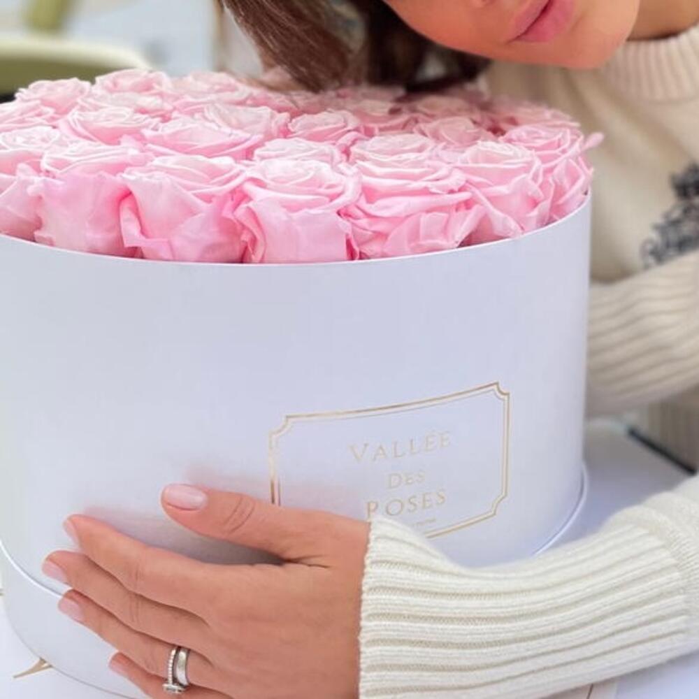 Soft, romantic, and endlessly elegant—this exquisite arrangement of preserved pink roses is the perfect symbol of grace and timeless affection. Nestled in a minimalist white hatbox, these roses captivate with their gentle blush tones and delicate charm, making them an ideal gift for birthdays, baby showers, bridal events, or simply to say youre special. Each rose has been carefully preserved to retain its fresh, velvety look for a year without the need for water or maintenance. To keep their delicate beauty intact, display them away from direct sunlight, heat, and high humidity. No watering or pruning required—just effortless floral luxury that endures. This is a gift that lingers in the heart long after the moment has passed.