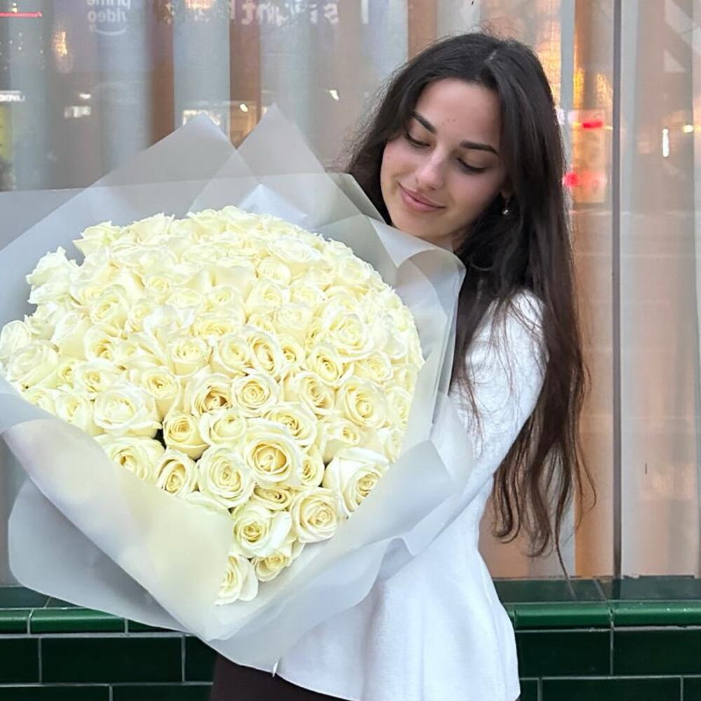 Experience the ultimate expression of love and elegance with this stunning mono bouquet. Comprising 101 long-stemmed white roses, each measuring 60 cm, this flower arrangement does more than impress. The pure white roses will capture the eye with their natural beauty and serve as a timeless token of affection. Perfect for weddings, anniversaries, or just because. Embrace the power of simplicity with this exquisite bouquet.