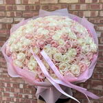 Make a grand statement with Eternal Elegance, our luxurious oversized bouquet featuring 150 exquisite roses in a breathtaking blend of soft ivory and blush pink tones. Expertly hand-tied and wrapped in premium paper with satin ribbon detail, this bouquet is the epitome of romance and sophistication. Whether youre marking a milestone or delivering a heartfelt message, this floral masterpiece is guaranteed to leave a lasting impression. Care Tips: Upon arrival, trim the stems diagonally and place the bouquet in cool, clean water. Keep out of direct sunlight and away from heat sources to preserve its delicate hues and form. Change the water every two days to keep your roses fresh and radiant.