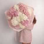 This stunning bouquet is a true showstopper, featuring voluminous hydrangeas in a soft palette of blush pink and creamy white. Its fluffy, cloud-like texture brings a sense of elegance and sophistication, making it the perfect gift for grand celebrations, romantic gestures, or unforgettable milestones. The oversized shape and harmonious colors instantly draw attention and admiration. To ensure your bouquet remains fresh and vibrant, place it in cool water as soon as possible, trim the stems at a diagonal angle every 2 days, and keep it away from direct sunlight and heat sources. Refresh the water daily and enjoy the long-lasting charm of hydrangeas.