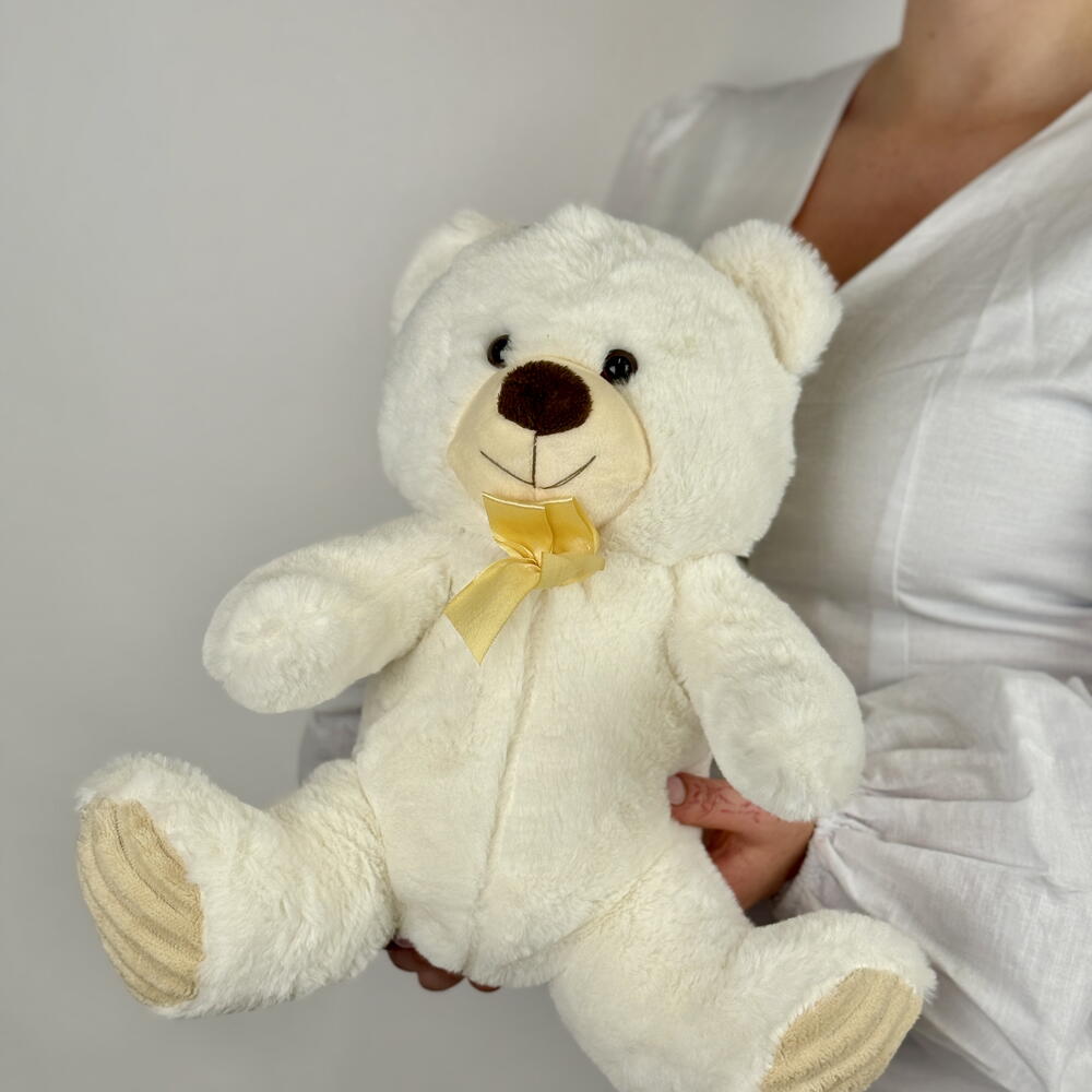 A soft and timeless gift, this 30cm white teddy bear is the perfect way to show someone you care. With its gentle colour and cuddly texture, it brings a feeling of calm, comfort and warmth to any occasion. Its simple design and neutral tone make it suitable for all ages and settings — from romantic moments to thoughtful gestures of support. This charming teddy makes a wonderful addition to flower bouquets, gift boxes, or as a standalone surprise that feels personal and meaningful. Perfect for: Valentine’s Day or anniversaries Birthdays for friends, partners, or children Baby showers and newborn gifts Get well soon or “thinking of you” moments Seasonal celebrations like Christmas or Easter Soft to the touch and full of heart, this teddy is a small gesture with a lasting impression — ideal for anyone who deserves a little extra love.