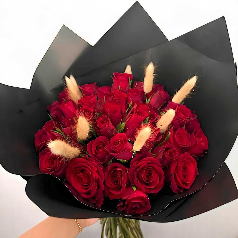 Ribbon - 1 pcs pampas grass (dried flower) - 8 pcs roses - 40 pcs wrappers - 3 pcs