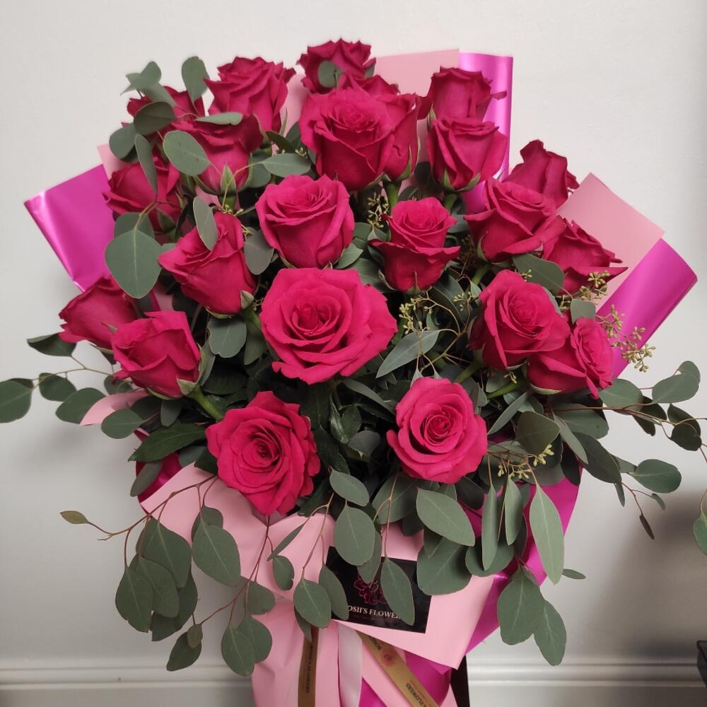 A Dream in Pink Bouquet: Same-Day Delivery of Pink Roses in London Immerse your loved ones in a world of luxury and affection with our exquisite ‘A Dream in Pink Bouquet’. This floral arrangement is a radiant assembly of top-tier hot pink roses, complemented by fresh eucalyptus greens.
