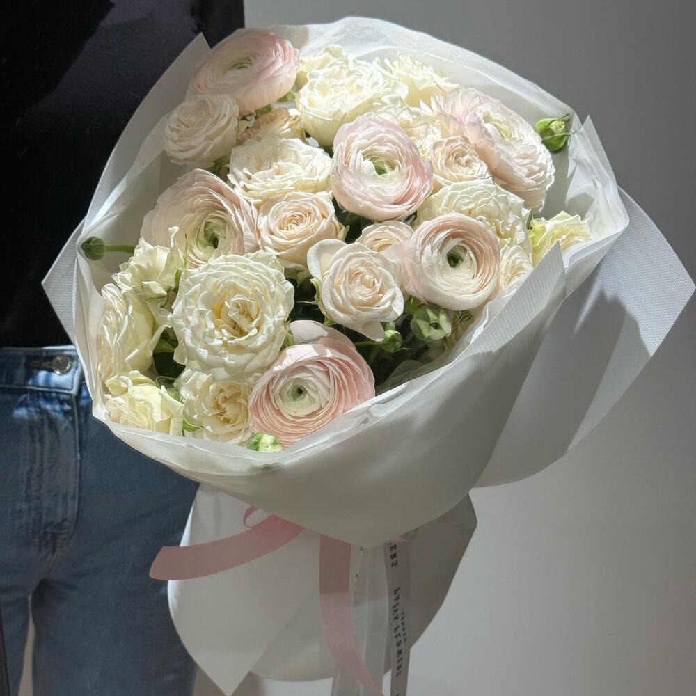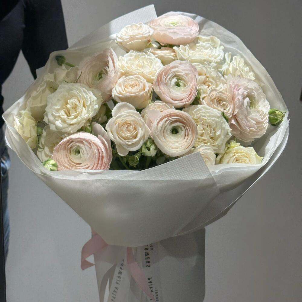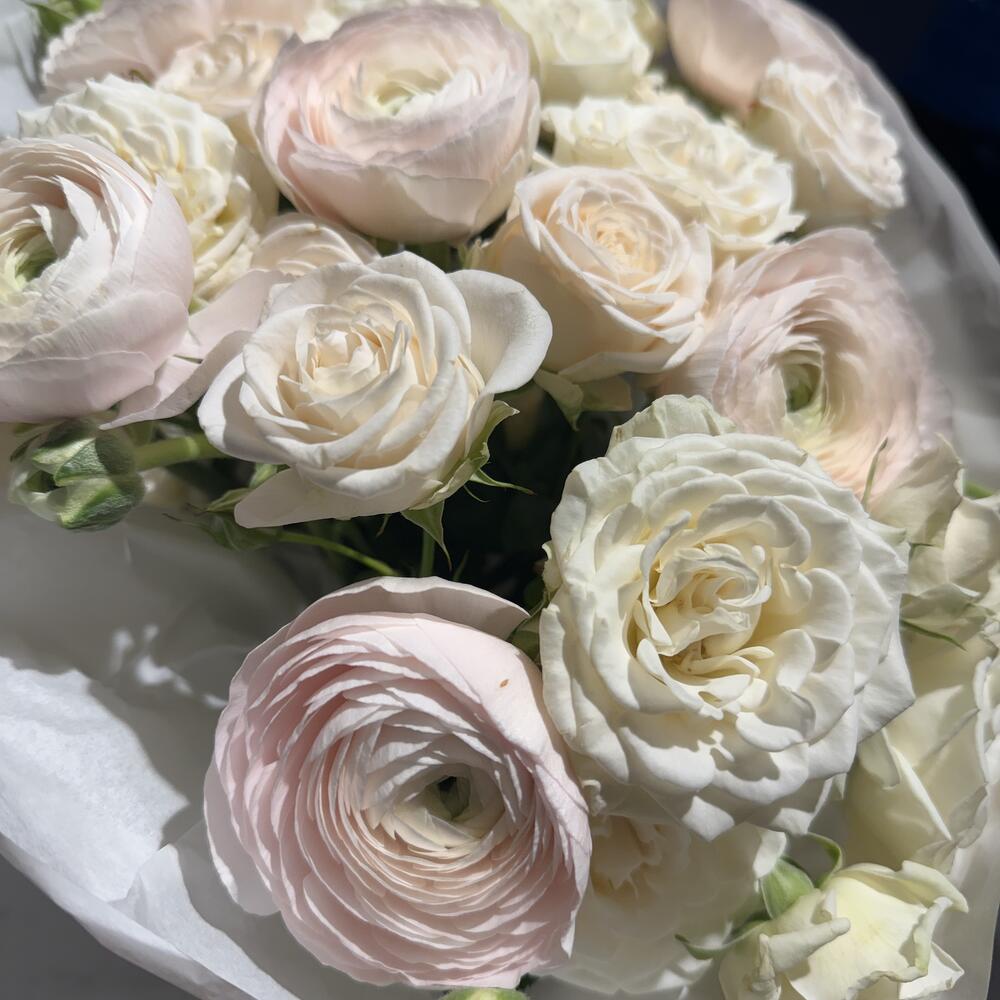 ranunculus hanoi - 6 pcs bridal piano - 3 pcs sofie spray rose - 2 pcs