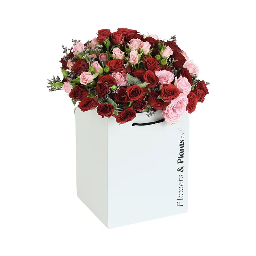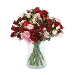 Sweet, vibrant and full of charm. Clusters of pink and red spray roses create a rich, layered depth of colour, while delicate pink limonium adds a soft, airy finish that ties the whole arrangement together beautifully. Small in name, big on personality.
