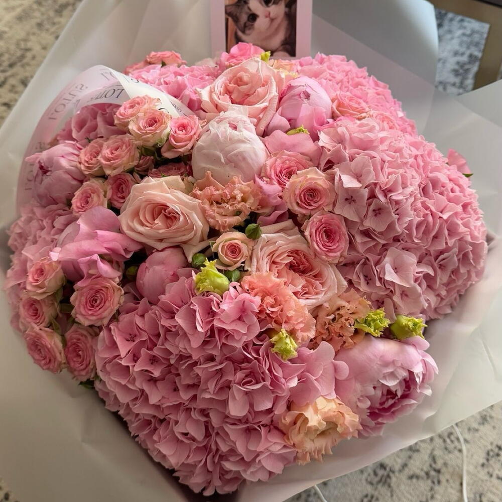 Eustoma - 10 pcs Peony - 20 pcs hydrangea - 5 pcs roses - 20 pcs