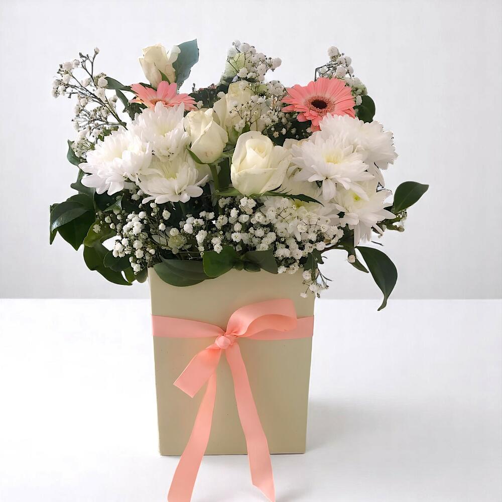 A delicate and graceful arrangement in soft pastel tones — this bouquet whispers elegance and serenity. Ideal for birthdays, baby showers, or simply to brighten someone’s day with a gentle touch.