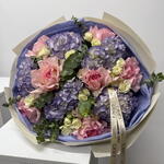 ecolyptus - 10 pcs spray roses - 10 pcs hydrangeas purple - 5 pcs rose mandala - 7 pcs