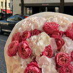 Indulge in the romantic allure of this Mono bouquet, intricately composed of 15 graceful pink roses, harmoniously intertwined with 5 lavish white hydrangeas. Enchanting and graceful, this bouquet is the perfect expression of affection and admiration, offering a sensational visual and sensory delight.