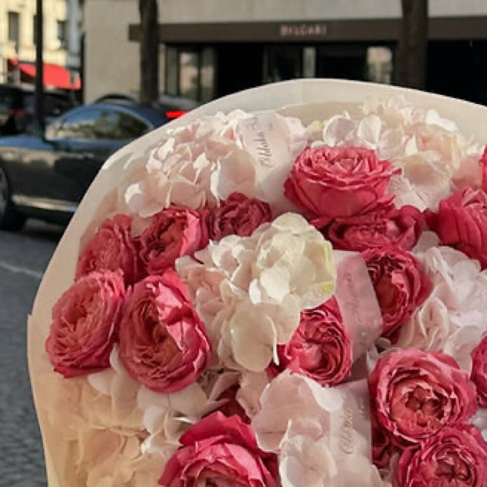 Indulge in the romantic allure of this Mono bouquet, intricately composed of 15 graceful pink roses, harmoniously intertwined with 5 lavish white hydrangeas. Enchanting and graceful, this bouquet is the perfect expression of affection and admiration, offering a sensational visual and sensory delight.