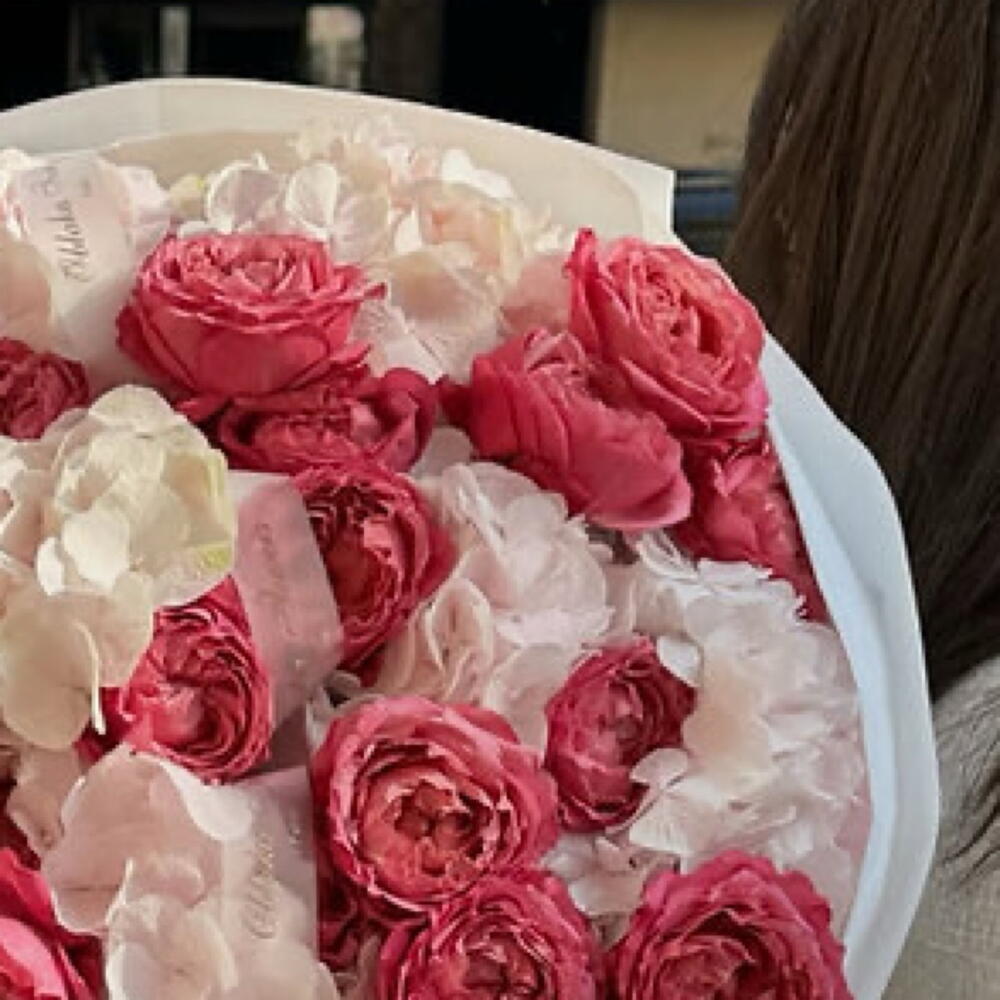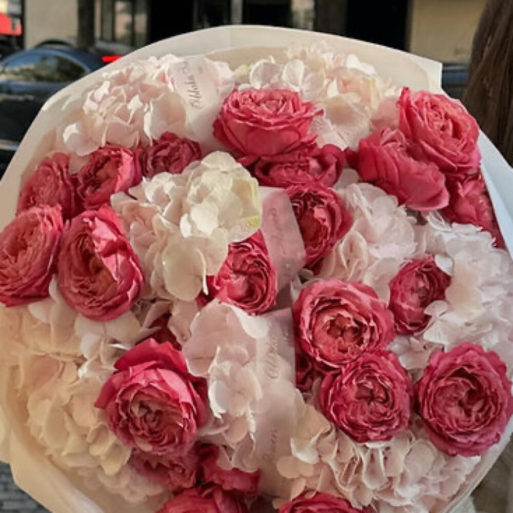 white hydrangeas - 5 pcs pink roses - 15 pcs