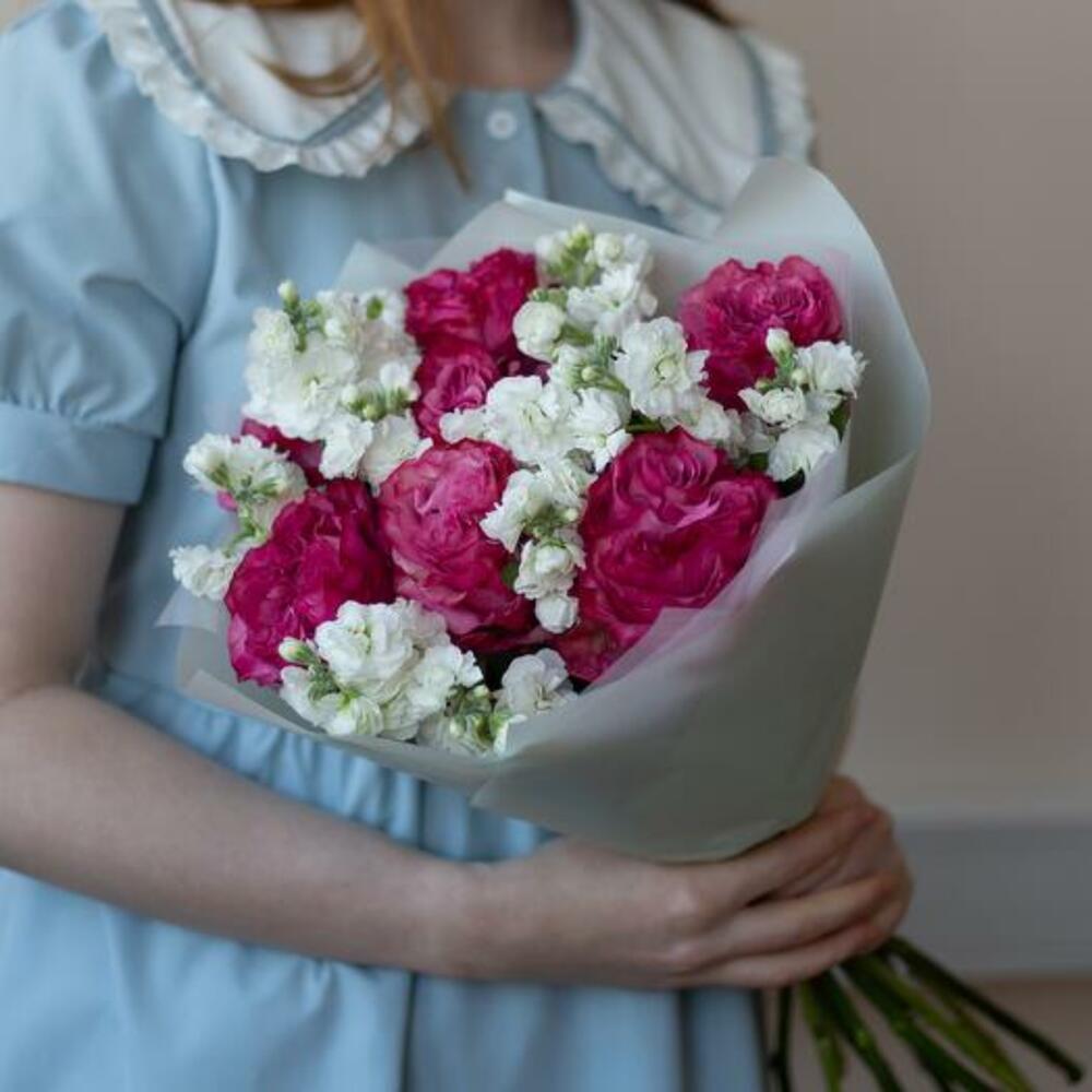 Peony rose - 7 pcs packaging - 2 pcs matthiola bush - 1 pcs