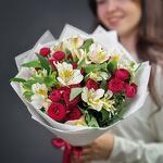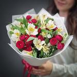 Alstroemeria - 4 pcs Wrapping - 1 pcs Pistachio - 3 pcs maroon spray rose - 5 pcs