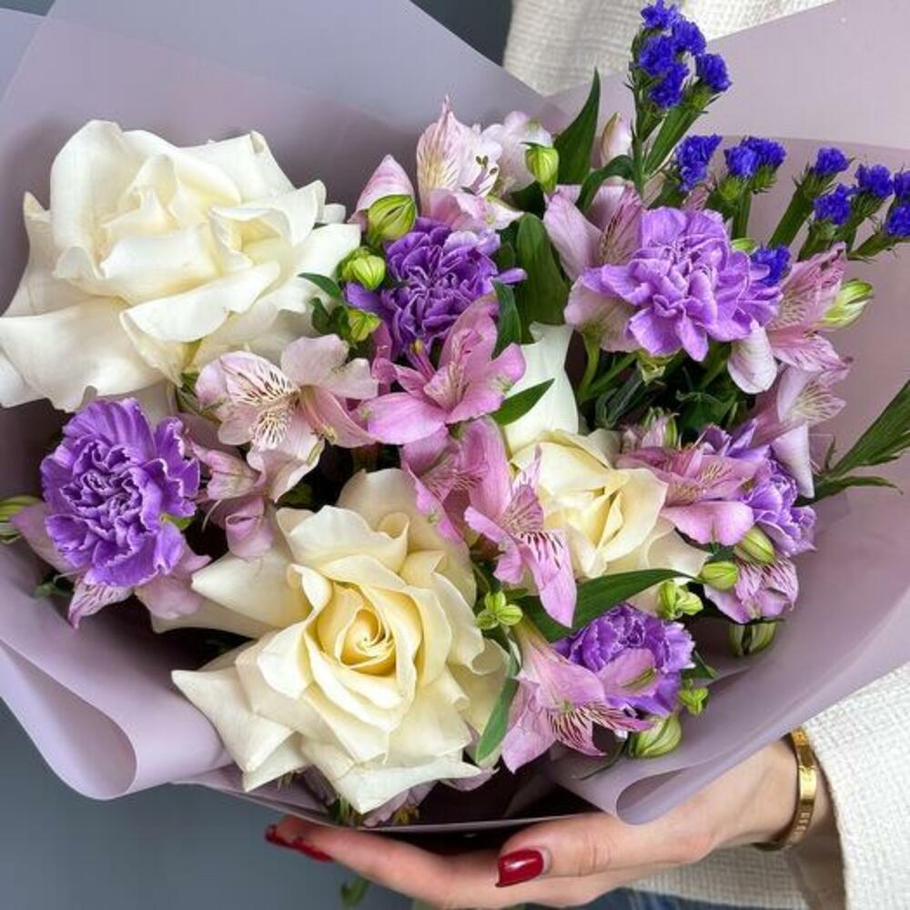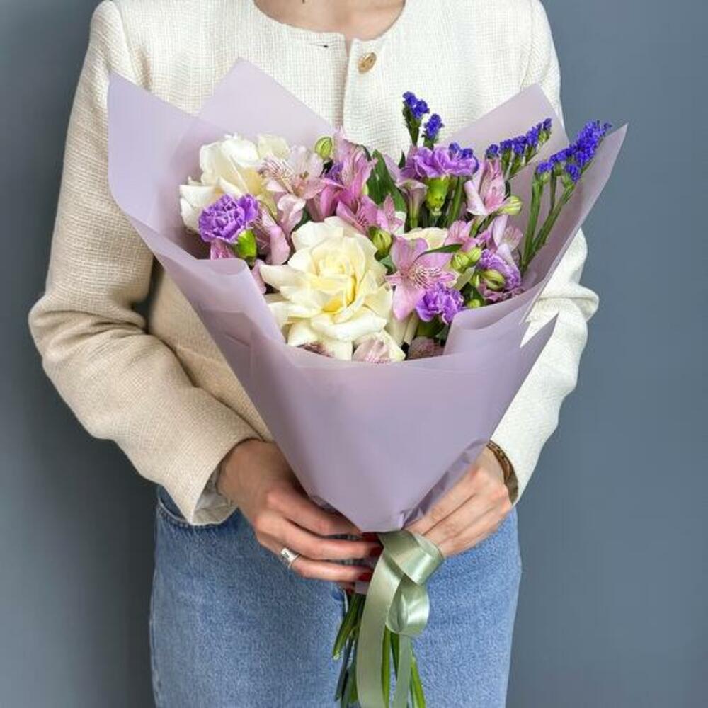 Статике - 1 pcs Alstroemeria - 7 pcs carnation - 5 pcs mondial rose - 3 pcs
