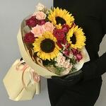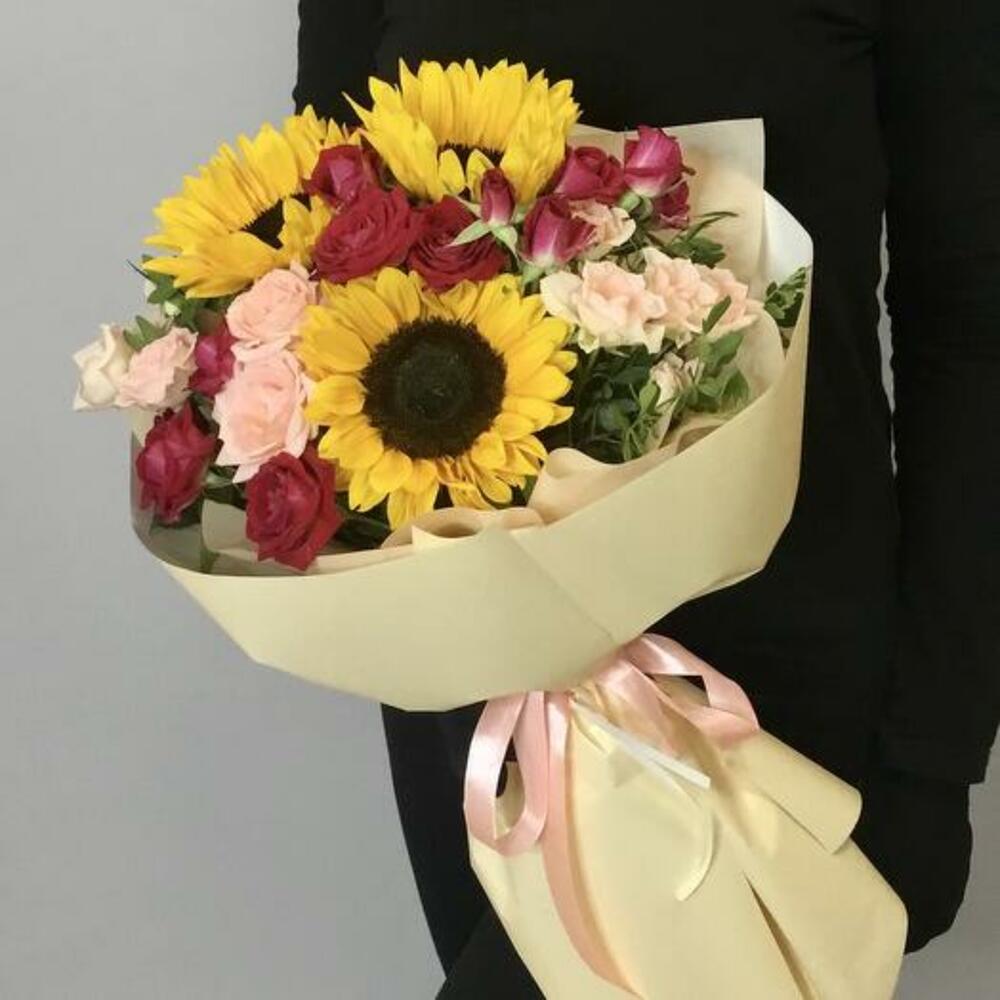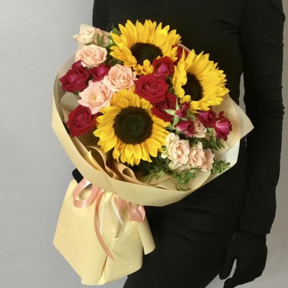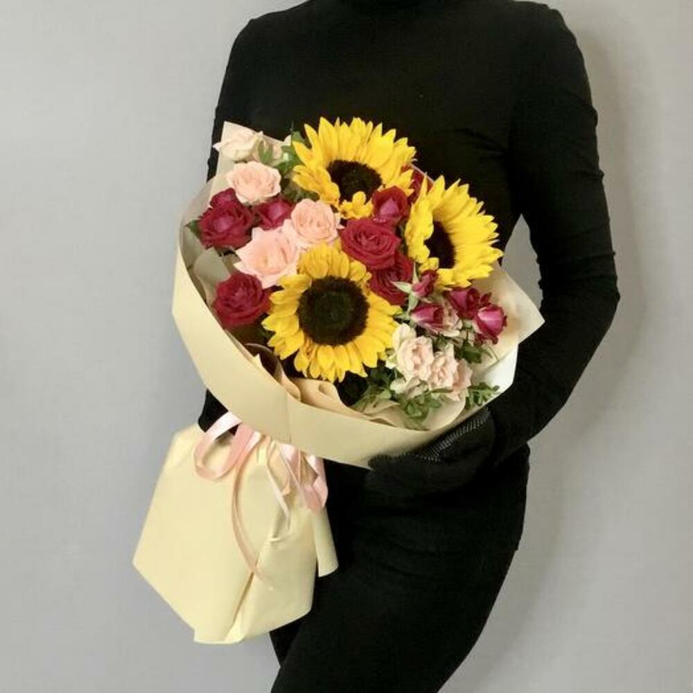 Bouquet with Sunflowers and Roses "Berry Summer"