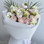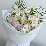 Freesia - 19 pcs palm leaves - 2 pcs ranunculus hanoi pink - 16 pcs