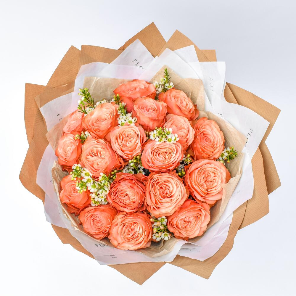 A classic bouquet of 18 large headed Ecuadorian roses with 3 wax flowers. *Substitution Policy: Due to seasonal availability of certain flowers from time to time, we may use a substitution.