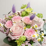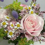 pink spray rose - 1 pcs camomile - 1 pcs pastel pink rose - 3 pcs limonium pink - 1 pcs bupleurum - 1 pcs