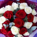 The "Candy Cane" bouquet features a beautiful mix of red and white roses, accented with fresh eucalyptus leaves. The combination of deep red and pure white roses creates a striking contrast that represents both passion and purity. The eucalyptus leaves add a natural and refreshing touch, with their soft green colour and unique aroma. The bouquet is arranged in a classic and elegant style, making it suitable for a wide range of occasions such as birthdays, anniversaries, or just to say "I love you". *Substitution Policy: Due to seasonal availability of certain flowers from time to time, we may use a substitution.