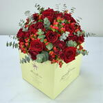 A luxurious hand-tied bouquet of our premium roses with a touch of hypericum eucalyptus. It’s the perfect off-piste choice for Valentine’s Day.