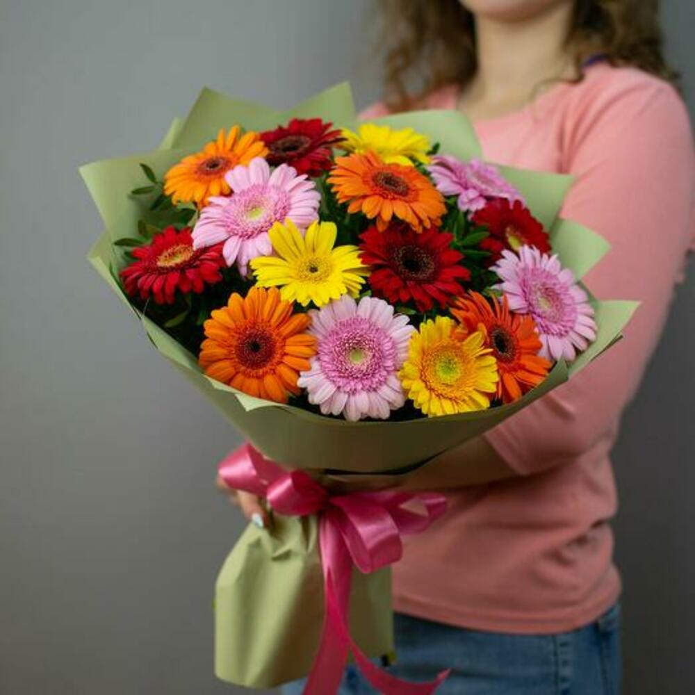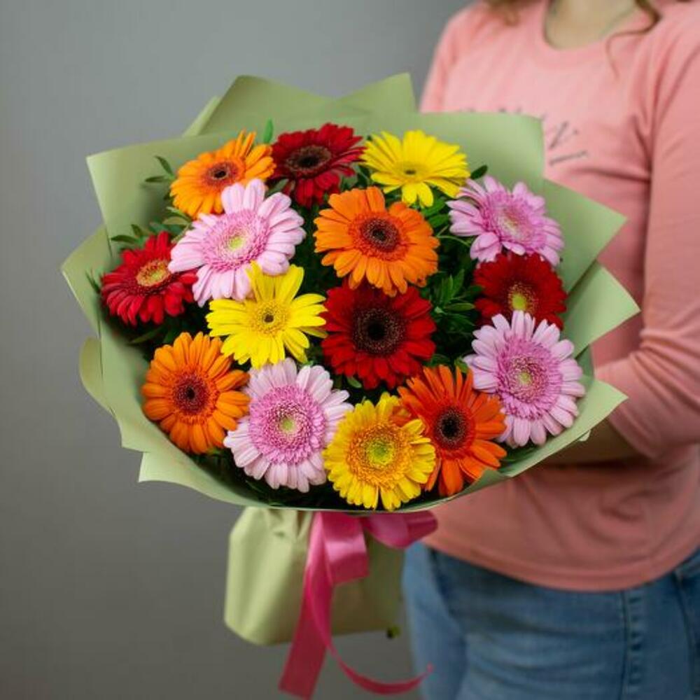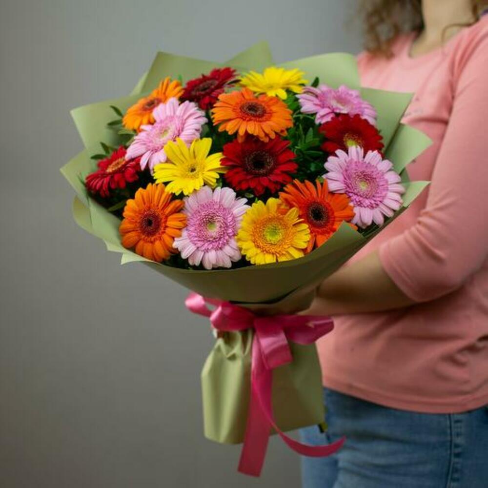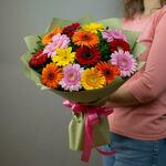 Brighten any occasion with our Colorful Cheer bouquet, featuring 15 vibrant mini gerberas in a delightful array of colors. Each bloom bursts with cheerful hues, creating a lively and joyful arrangement that’s perfect for celebrations, birthdays, or simply to add a splash of color to someone’s day. Hand-tied with care and beautifully wrapped, this bouquet is designed to bring smiles and brighten moments.