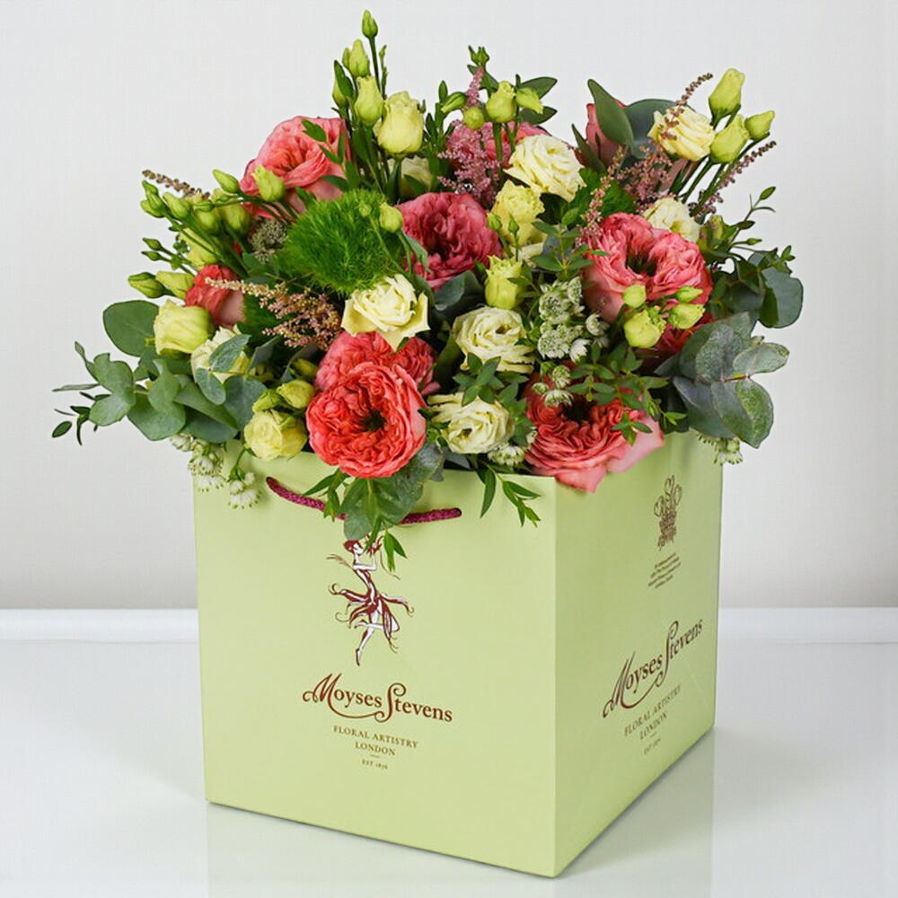 Astrantia - 8 pcs Eustoma - 6 pcs astilbe - 6 pcs dianthus barbatus - 6 pcs garden roses - 9 pcs seasonal foliage (bunch) - 1 pcs