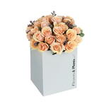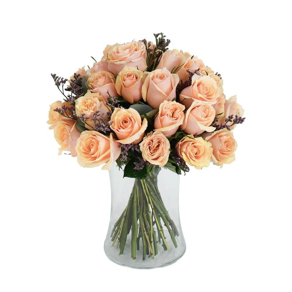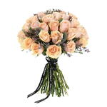 pink limonium - 5 pcs peach roses - 45 pcs seasonal foliage (bunch) - 1 pcs