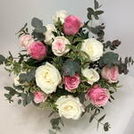 Eucalyptus - 5 pcs Pink rose - 8 pcs White rose - 7 pcs