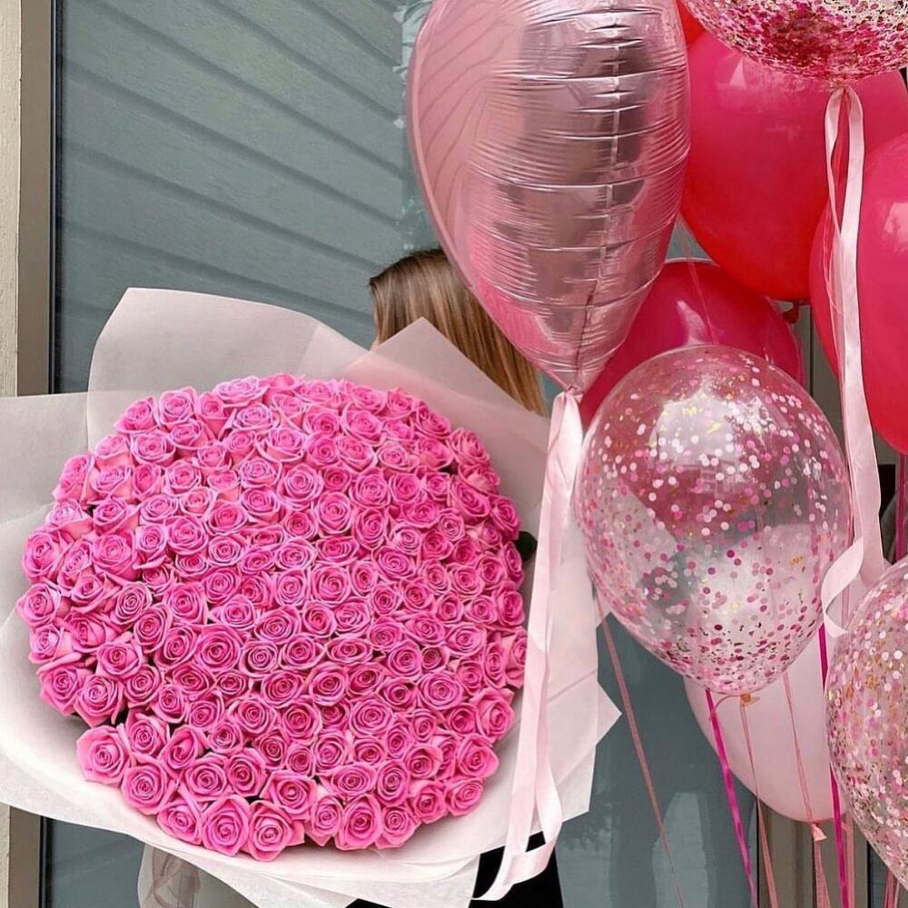 Make a grand statement with our luxurious bouquet of 150 premium pink roses and balloons. This stunning arrangement is the perfect way to show your love and appreciation on any special occasion. Order now and let us help you make a lasting impression!