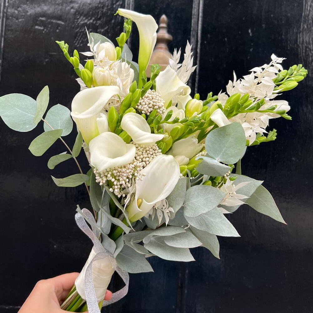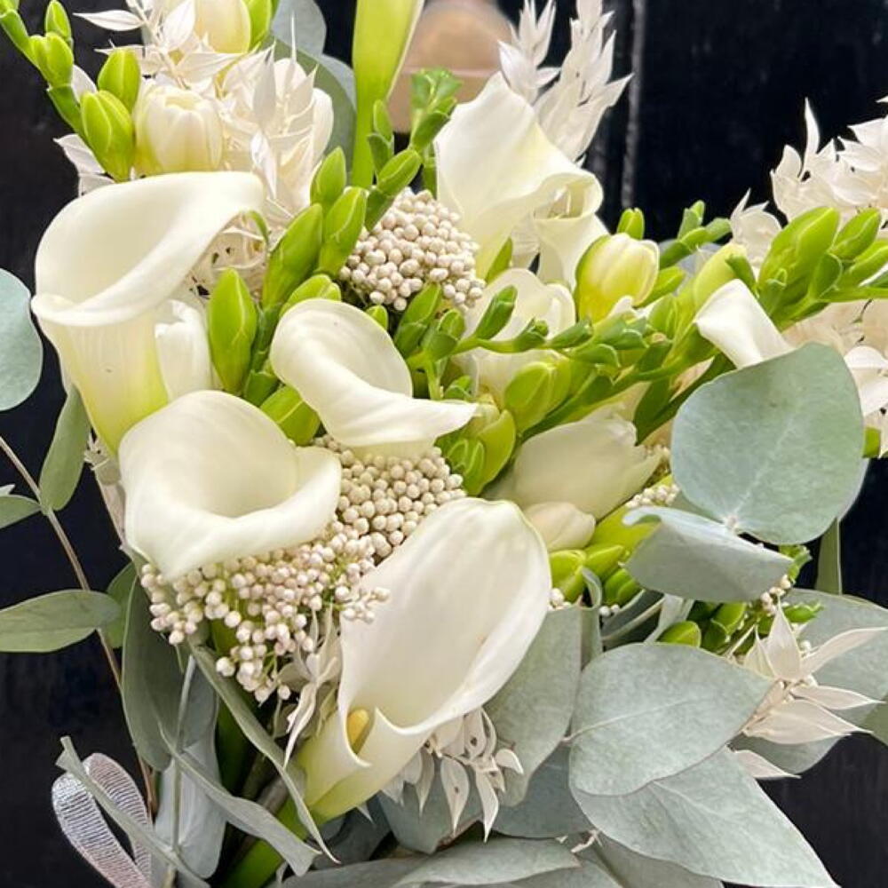 Eucalyptus - 2 pcs Frezia - 5 pcs ozothamnus - 3 pcs calla lily - 7 pcs