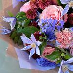Statice - 4 pcs Ecuadorian rose - 8 pcs Clematis - 5 pcs Pistacia - 3 pcs packaging - 1 pcs dianthus - 4 pcs santini chrysanthemums - 4 pcs