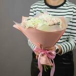 Experience refined elegance with our Eternal Grace bouquet, featuring three pristine white hydrangeas paired with luxurious peony roses. This sophisticated arrangement blends the timeless beauty of hydrangeas with the romantic allure of peony roses, creating a harmonious and elegant display. Hand-tied with care and beautifully wrapped, this bouquet is perfect for weddings, anniversaries, or any special occasion. Let Eternal Grace add a touch of sophistication and charm to your celebrations.