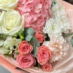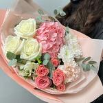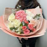 Our beautiful bouquet with pink hydrangea and white peony roses is a true work of art, created with love and attention to detail. This composition embodies tenderness and grace, creating the effect of a delicate scattering of flowers. The main accent of the bouquet is pink hydrangea and white peony roses, which embody luxury and elegance. Additionally, white alstromeria, bush chrysanthemum and dianthus add textural and colour contrast, making the bouquet unique and harmonious. Give joy and beauty with this beautiful bouquet!