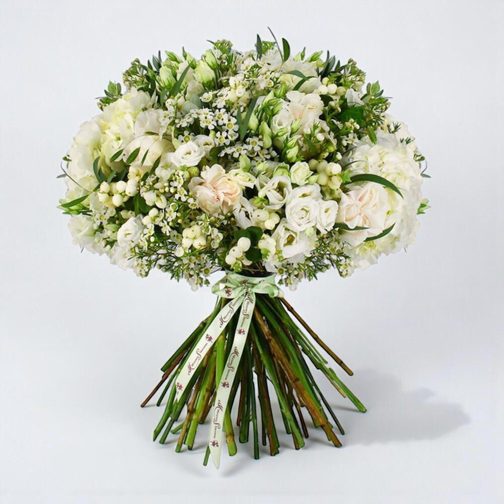A vision of timeless elegance, this bouquet captures the grace of a Regency love story. Pure white roses symbolize devotion, while soft hydrangeas lend a touch of grandeur, reminiscent of moonlit promenades through Mayfair’s garden squares. Subtle textures and delicate blooms weave together a sense of romance and refinement — a floral ode to happily ever afters.